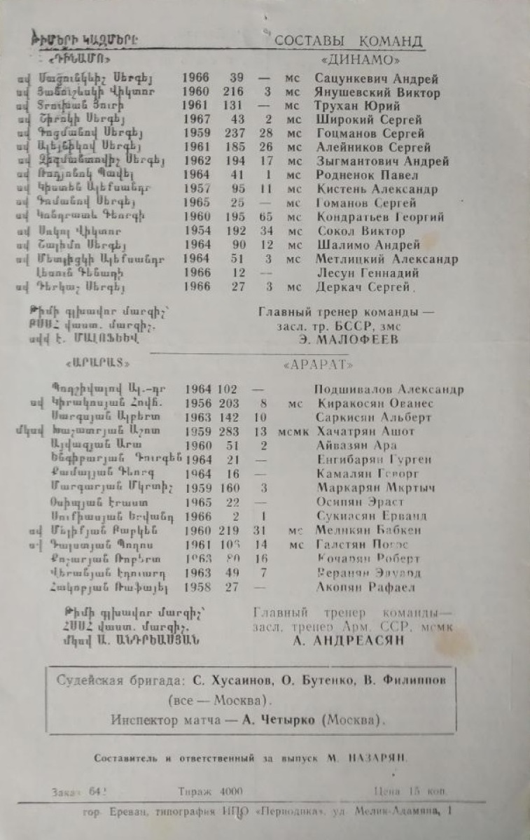 «Арарат» Ереван - «Динамо» Минск - 0:0