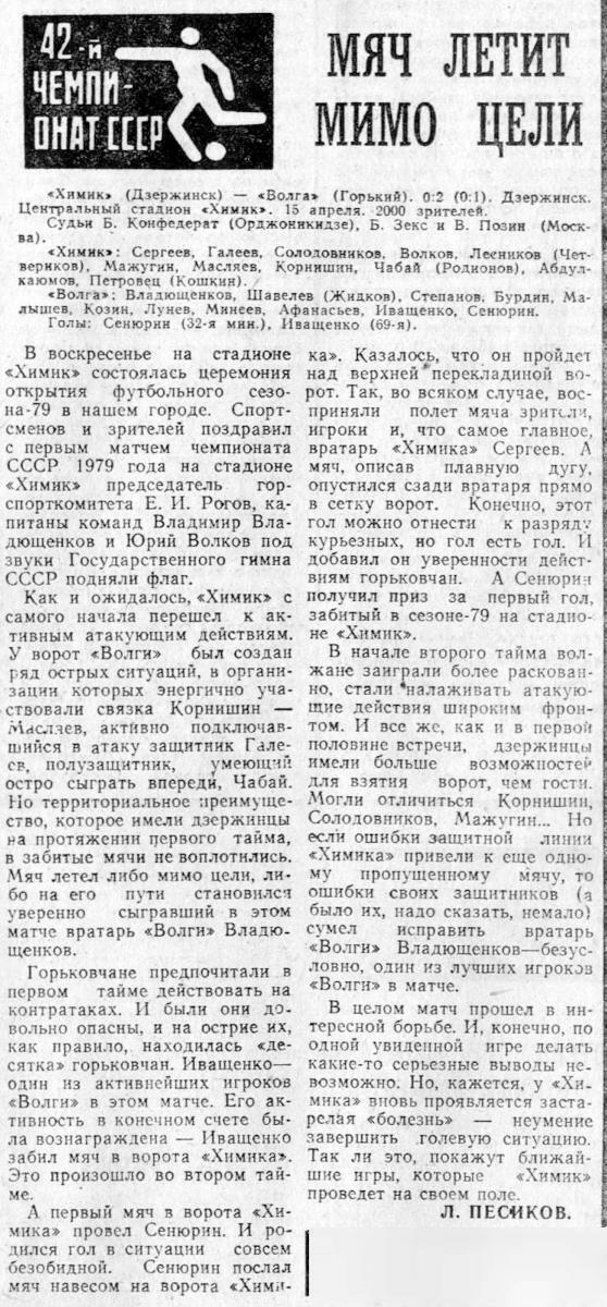 «Химик» Дзержинск - «Волга» Горький - 0:2