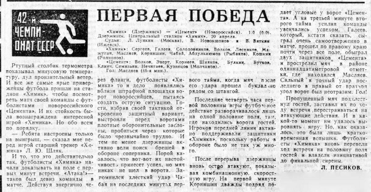 «Химик» Дзержинск - «Цемент» Новороссийск - 1:0