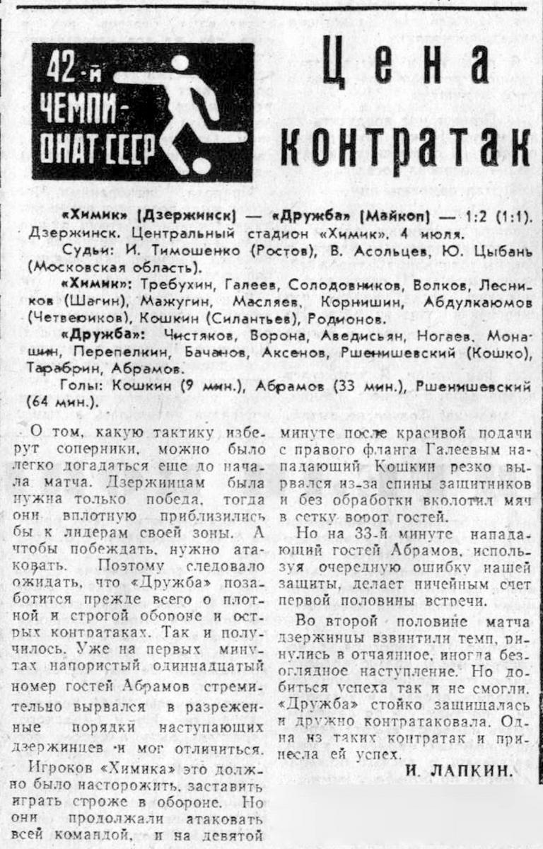 «Химик» Дзержинск - «Дружба» Майкоп - 1:2