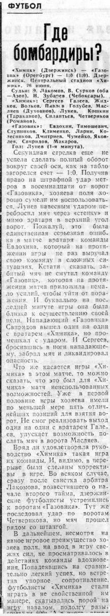 «Химик» Дзержинск - «Газовик» Оренбург - 1:0