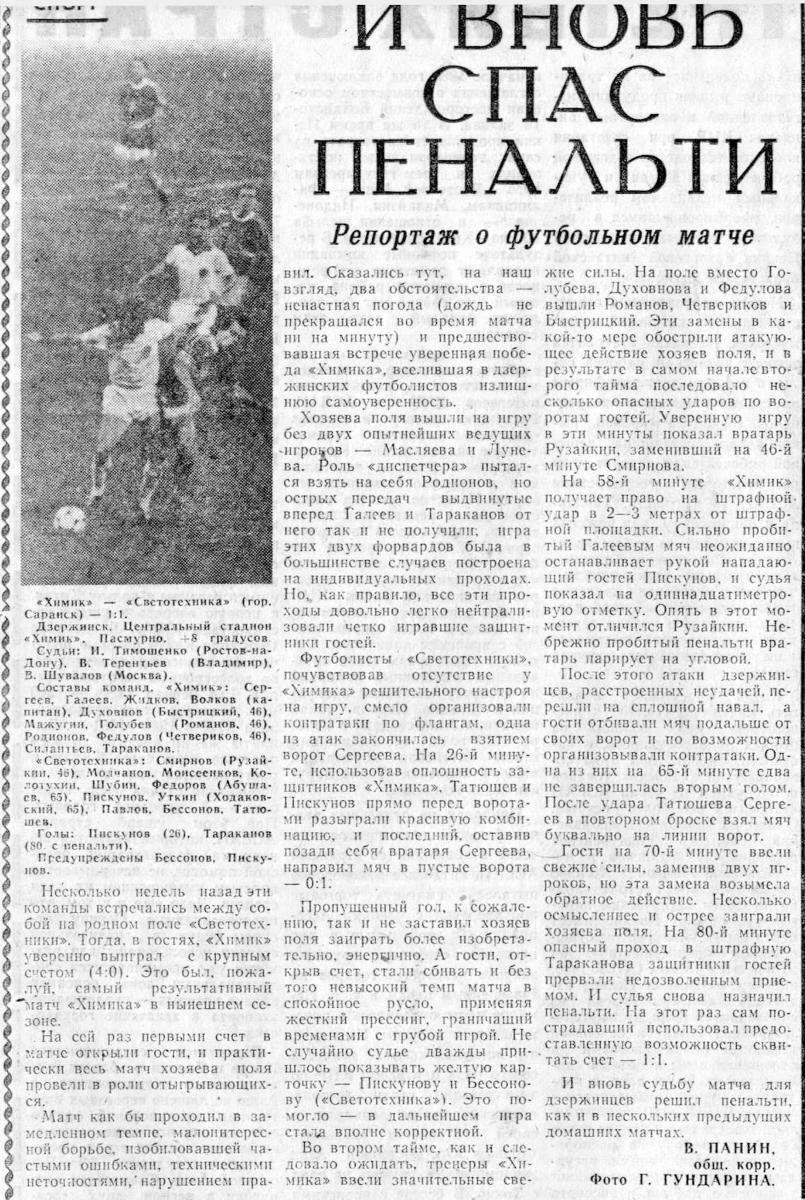 «Химик» Дзержинск - «Светотехника» Саранск - 1:1