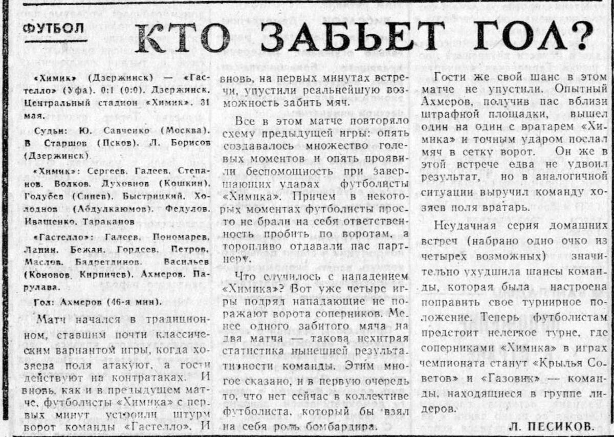«Химик» Дзержинск - СК «Гастелло» Уфа - 0:1