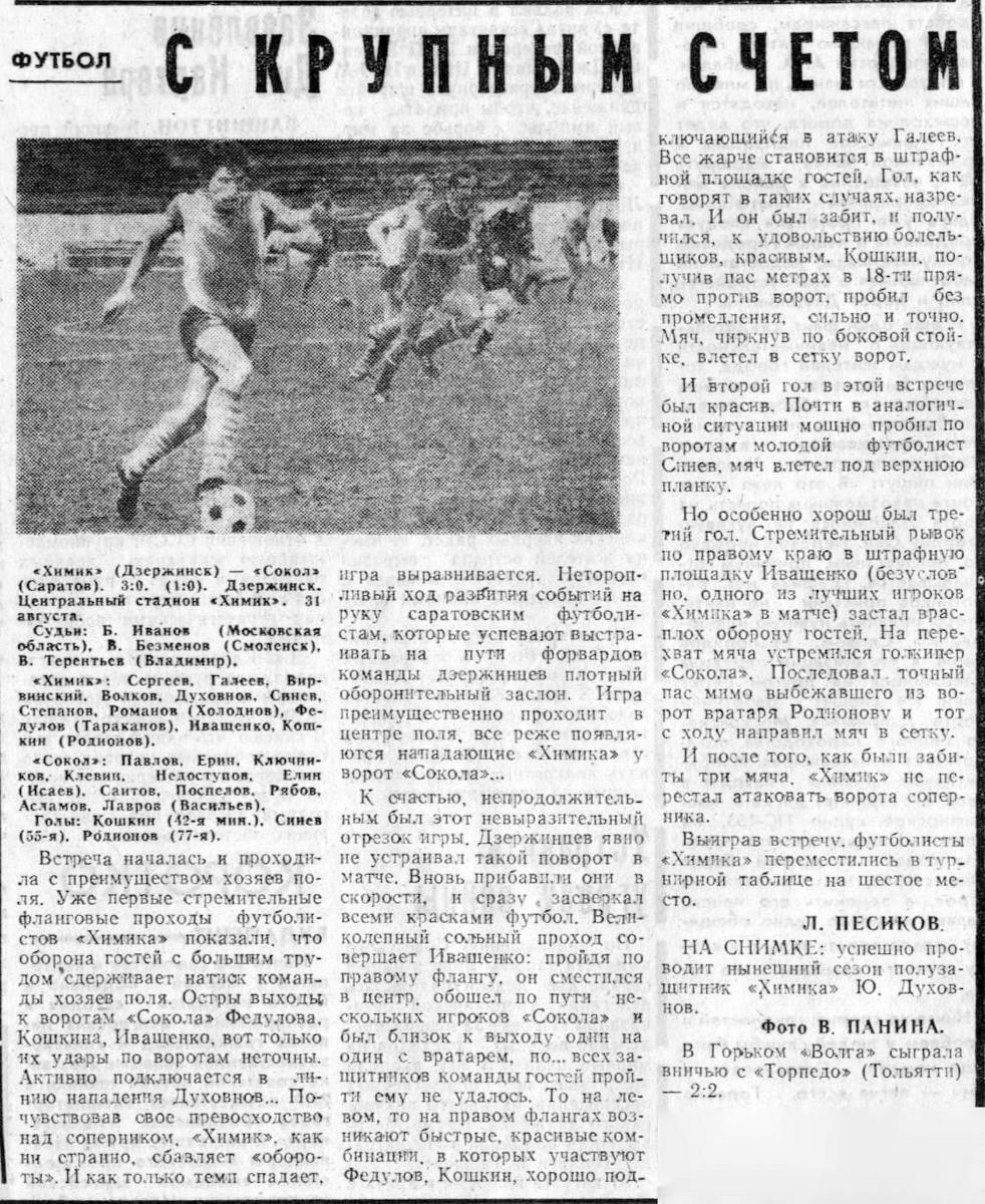 «Химик» Дзержинск - «Сокол» Саратов - 3:0