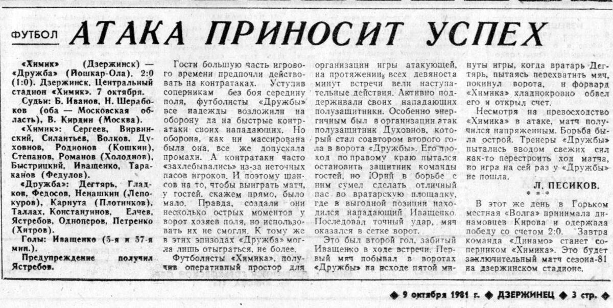 «Химик» Дзержинск - «Дружба» Йошкар-Ола - 2:0