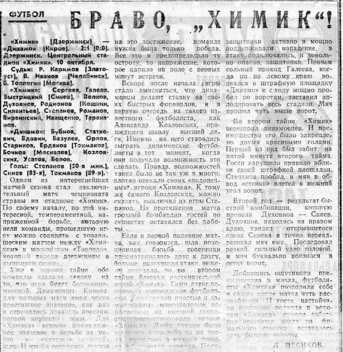 «Химик» Дзержинск - «Динамо» Киров - 2:1