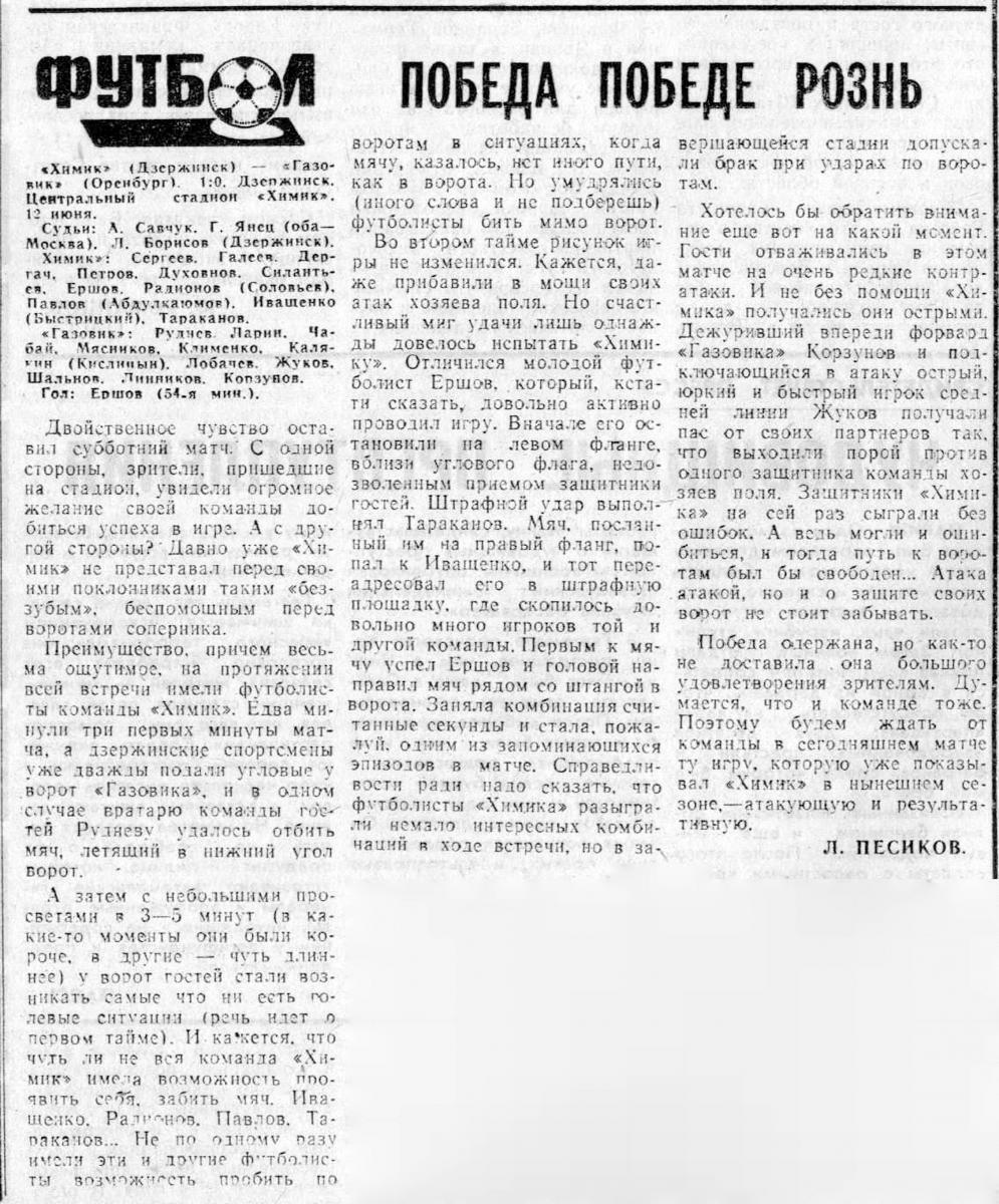 «Химик» Дзержинск - «Газовик» Оренбург - 1:0