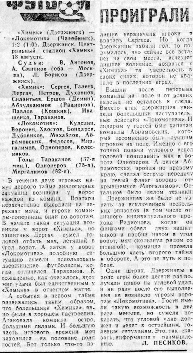 «Химик» Дзержинск - «Локомотив» Челябинск - 1:2