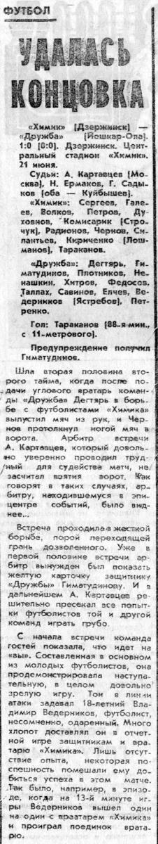 «Химик» Дзержинск - «Дружба» Йошкар-Ола - 1:0
