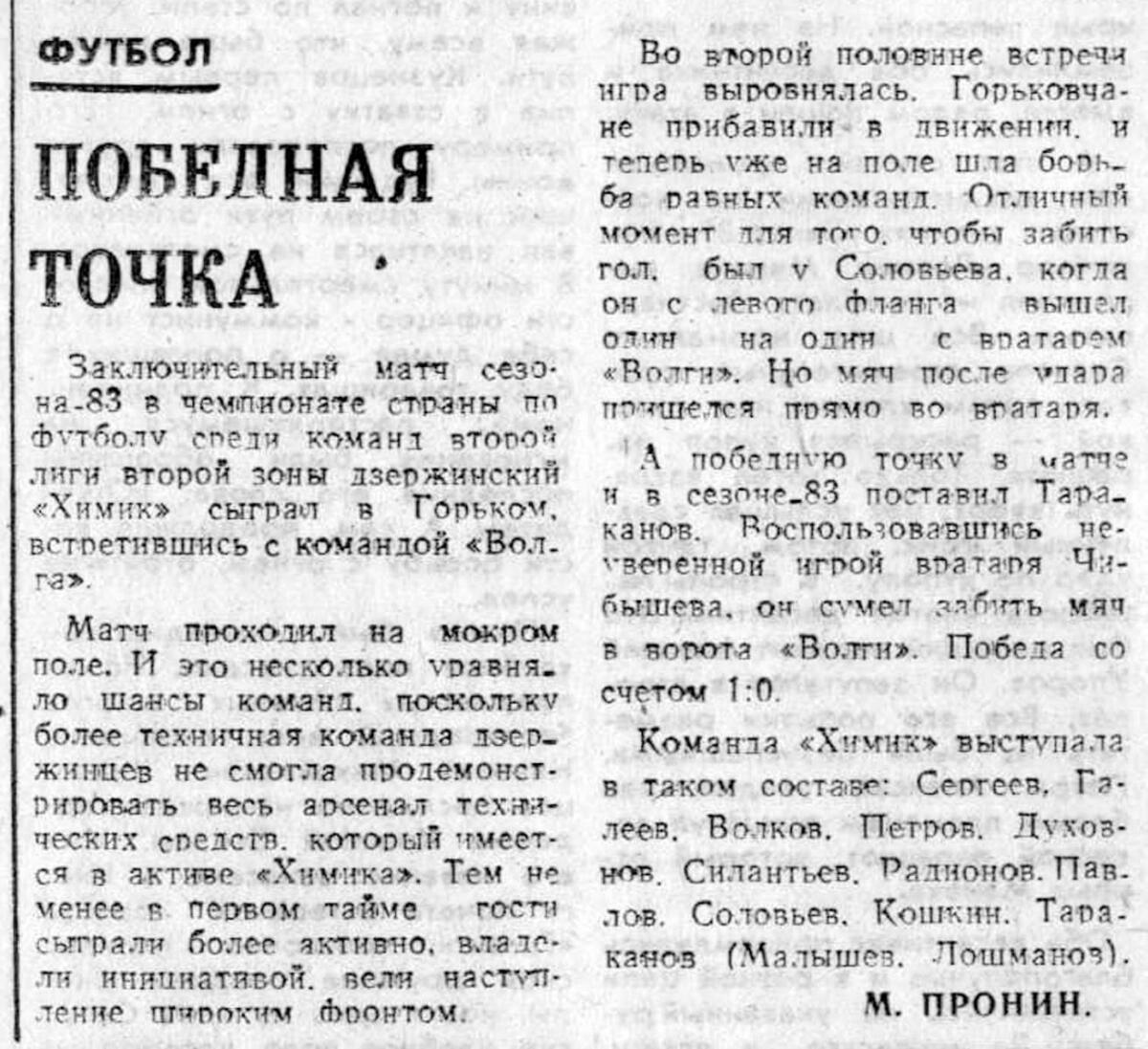 «Волга» Горький - «Химик» Дзержинск - 0:1