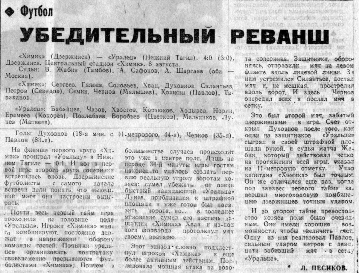 «Химик» Дзержинск - «Уралец» Нижний Тагил - 4:0