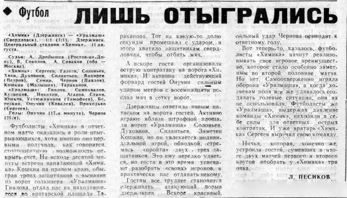 «Химик» Дзержинск - «Уралмаш» Свердловск - 1:1