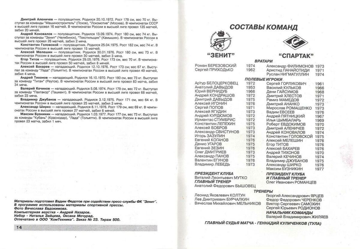 «Зенит» Санкт-Петербург - «Спартак» Москва - 0:0