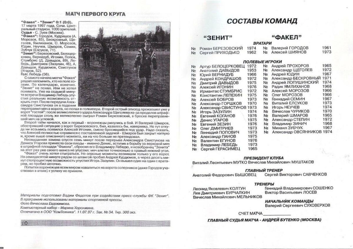 «Зенит» Санкт-Петербург - «Факел» Воронеж - 0:1