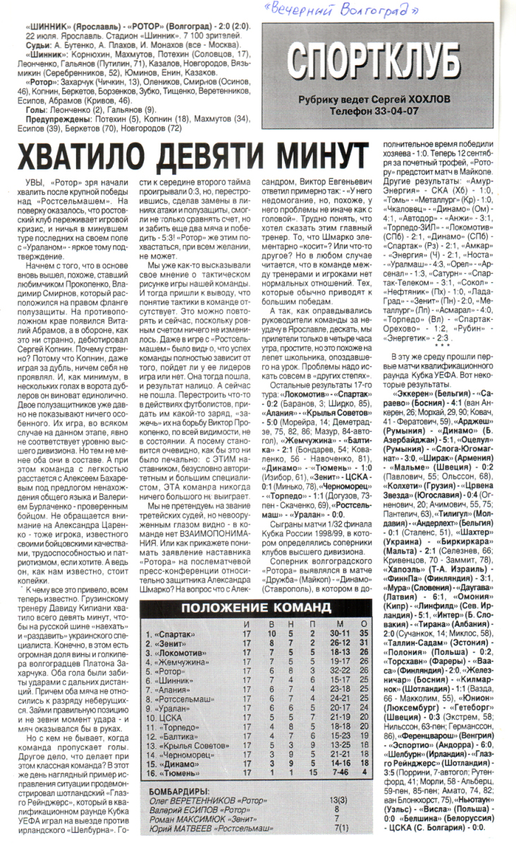 «Шинник» Ярославль - «Ротор» Волгоград - 2:0