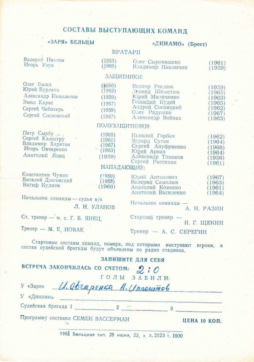 «Заря» Бельцы - «Динамо» Брест - 2:0