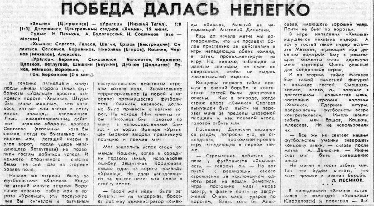«Химик» Дзержинск - «Уралец» Нижний Тагил - 1:0