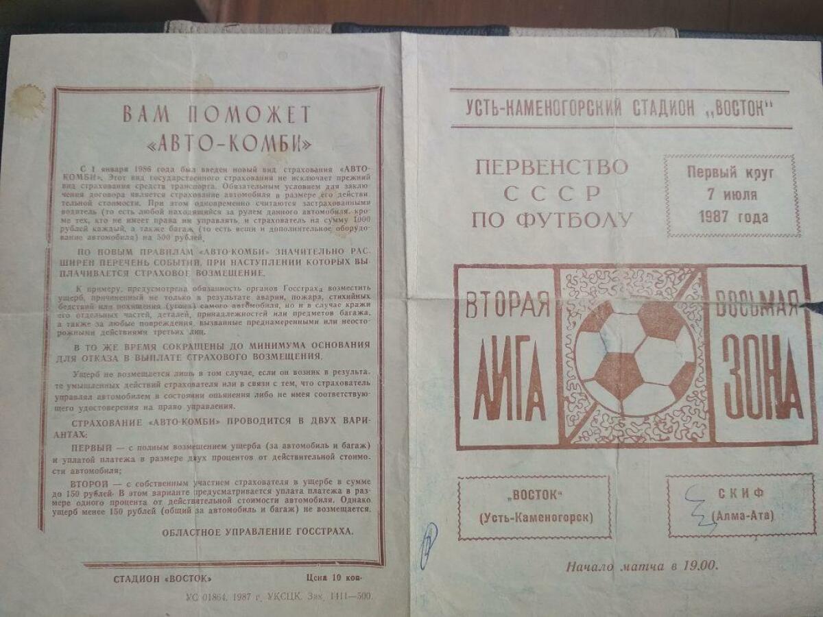 «Восток» Усть-Каменогорск - СКИФ Алма-Ата - 2:0