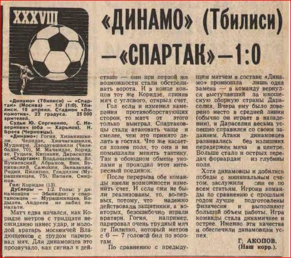 «Динамо» Тбилиси - «Спартак» Москва - 1:0