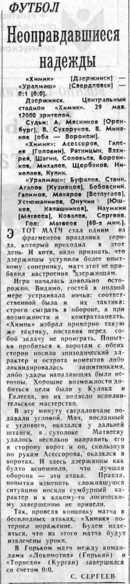 «Химик» Дзержинск - «Уралмаш» Свердловск - 0:1