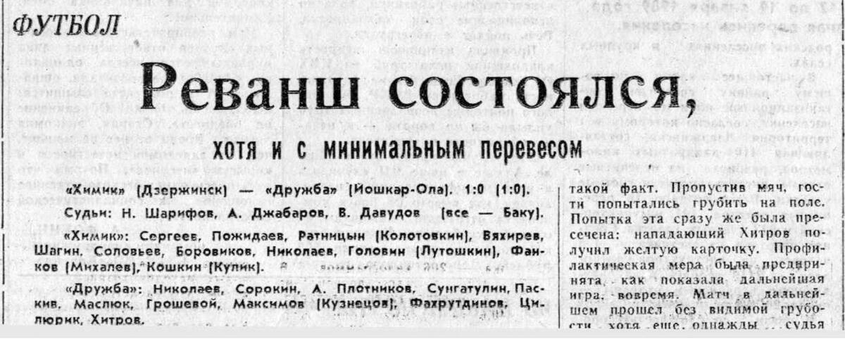 «Химик» Дзержинск - «Дружба» Йошкар-Ола - 1:0