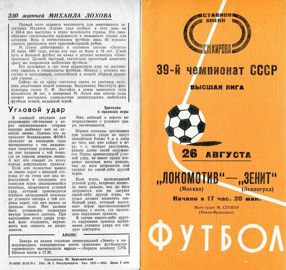 «Зенит» Ленинград - «Локомотив» Москва - 1:0