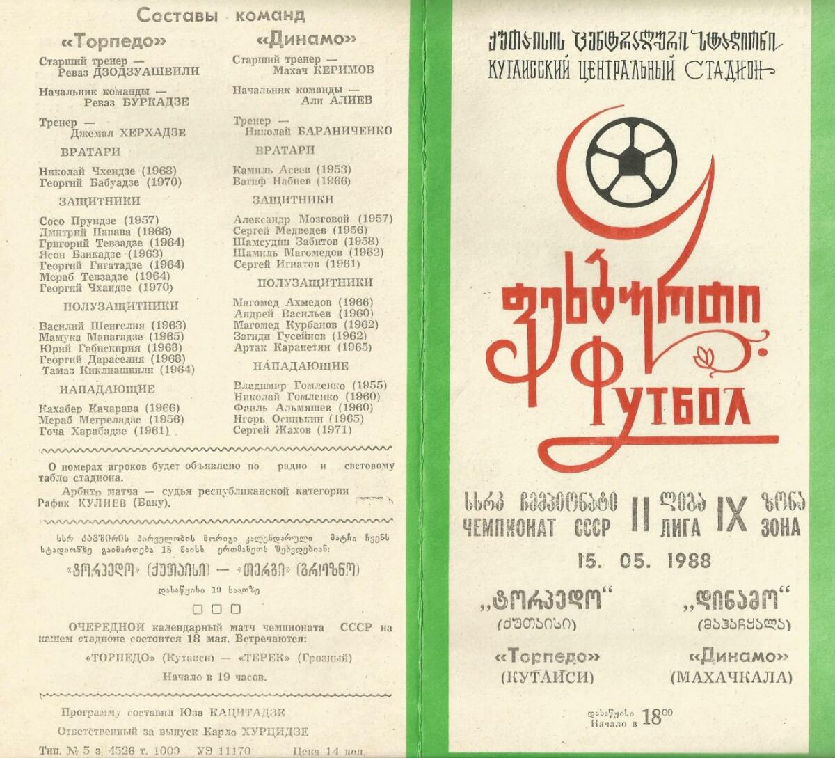 «Торпедо» Кутаиси - «Динамо» Махачкала - 3:2