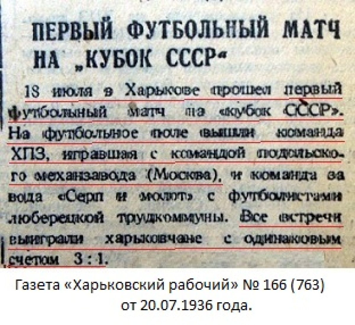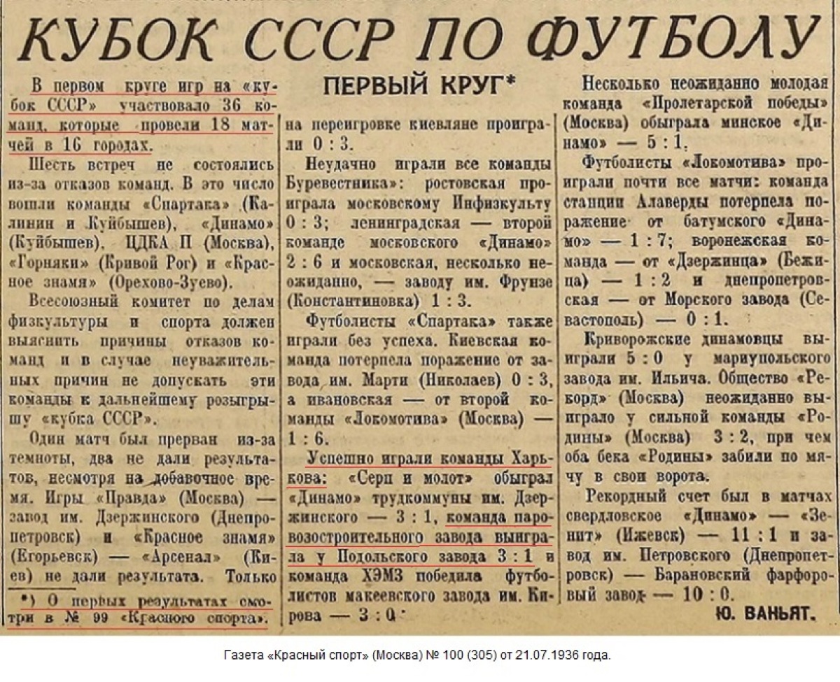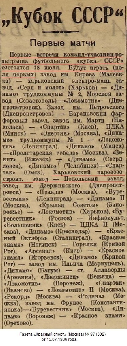 18 июля в Советском Союзе был проведен круг (1/64 финала) футбольных соревнований на кубок СССР. В этот день в Харькове команда Харьковского паровозостроительного завода выиграла матч у команды подольского мехзавода со счетом 3:1...