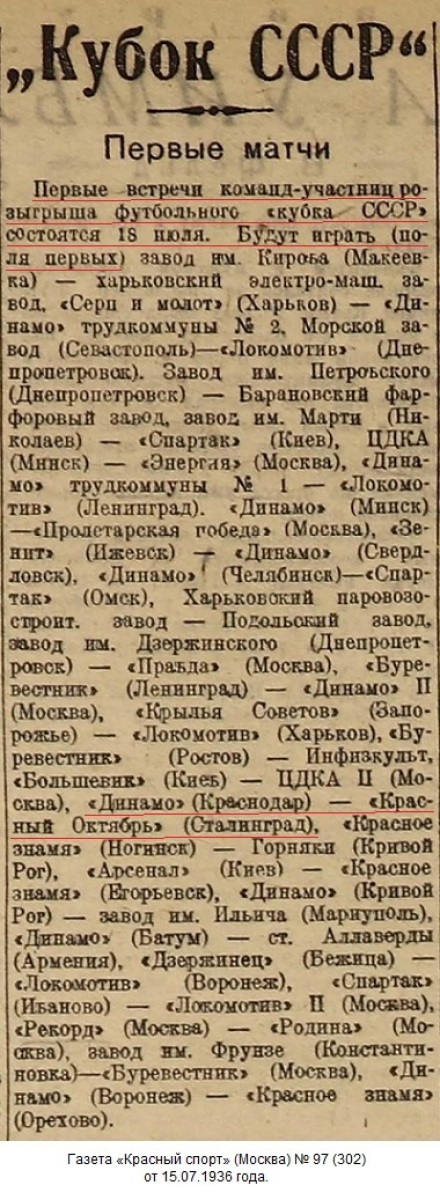 «Динамо» Краснодар - «Красный Октябрь» Сталинград - +:-