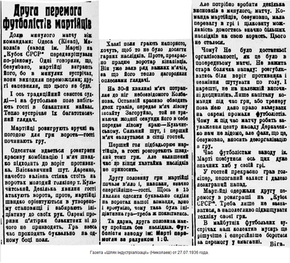 Газета «Шлях iндустрiалiзацii» (Николаев) от 27.07.1936 года (перевод).