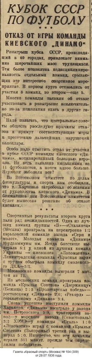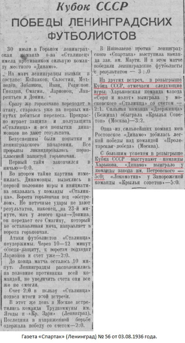 ...Участием в розыгрыше второго круга вступают в соревнование на кубок СССР еще две харьковские команды – «Динамо» и «Спартак».