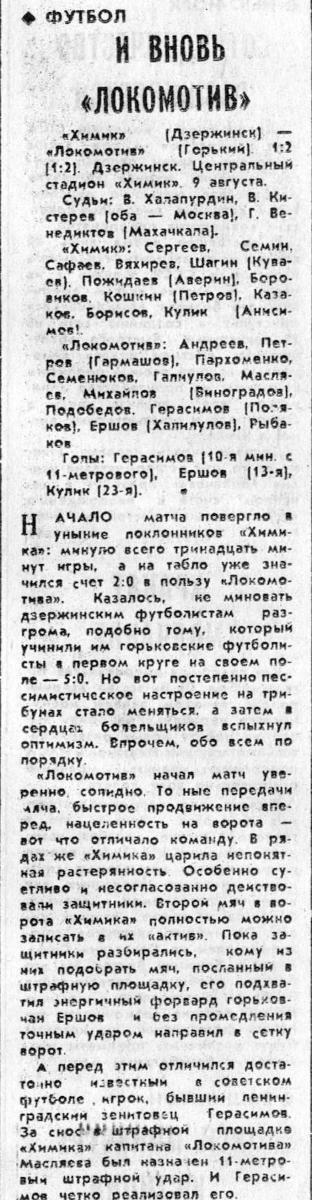 «Химик» Дзержинск - «Локомотив» Горький - 1:2
