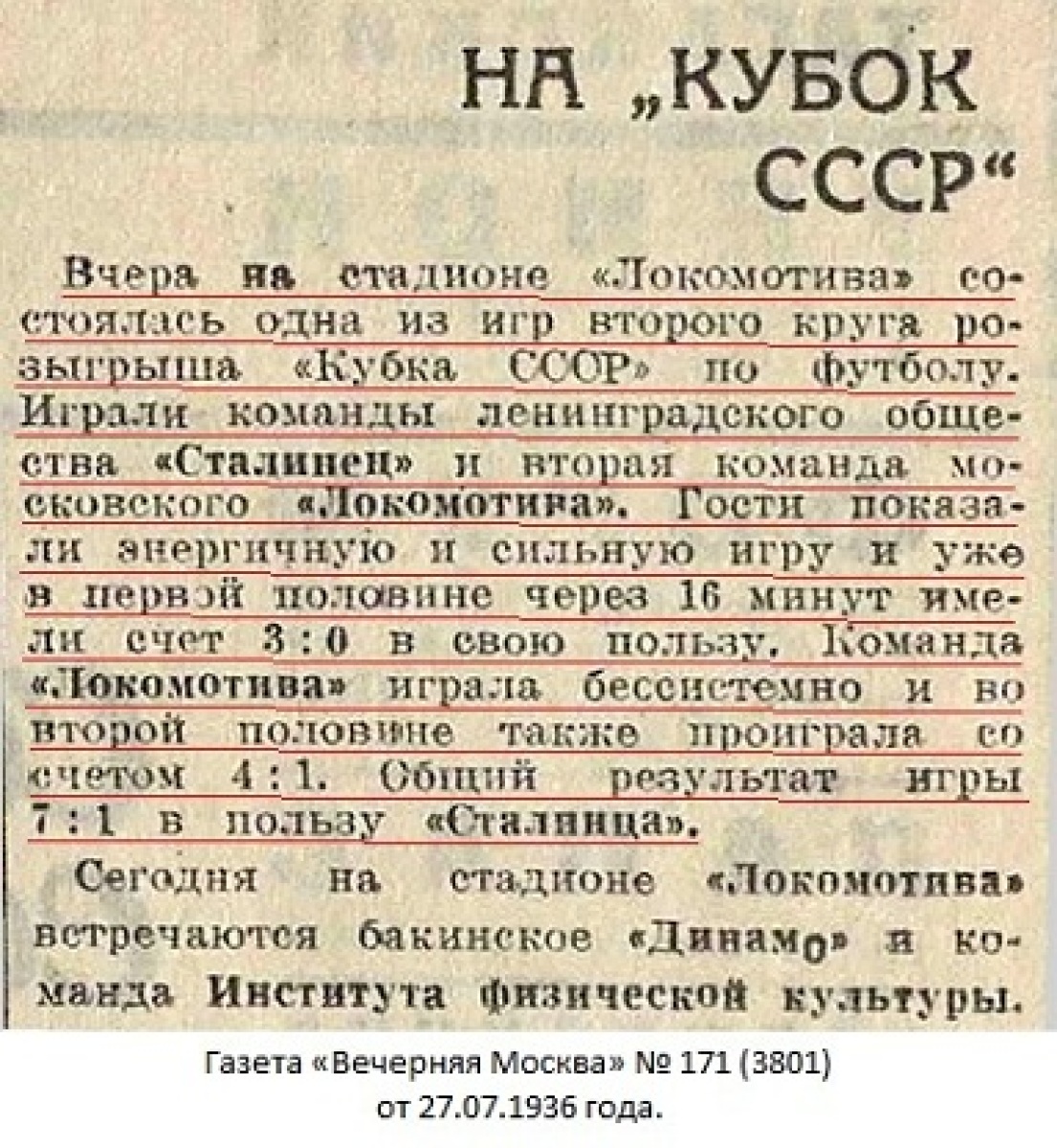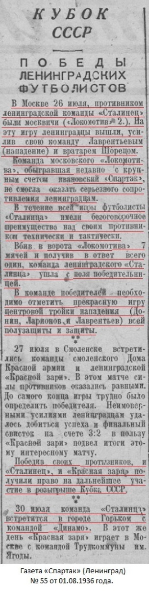 26 июля наши футболисты встретились в Москве с командой общества «Локомотив-2». Эту встречу на кубок СССР наши футболисты выиграли с результатом 7:1.