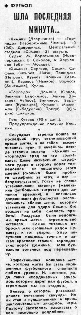 «Химик» Дзержинск - «Торпедо» Набережные Челны - 1:0