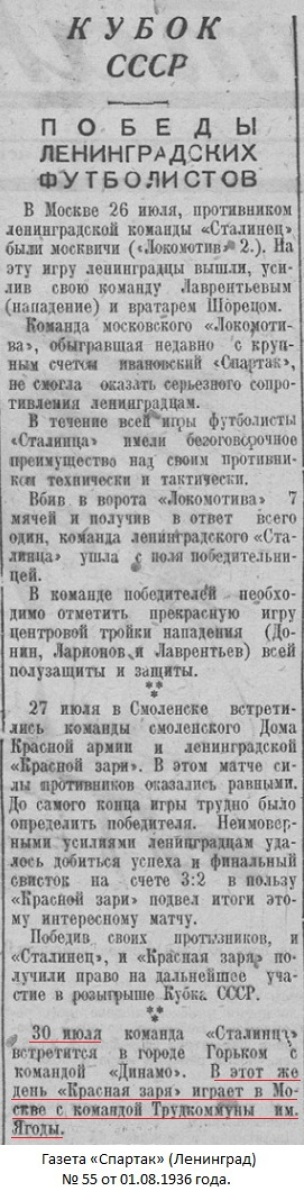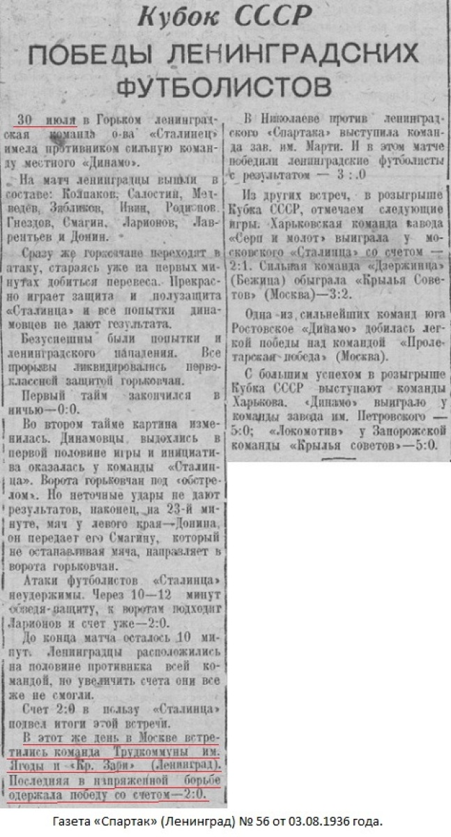 «Динамо - Трудкоммуна № 1 им. Ягоды» Болшево - «Красная заря» Ленинград - 0:2
