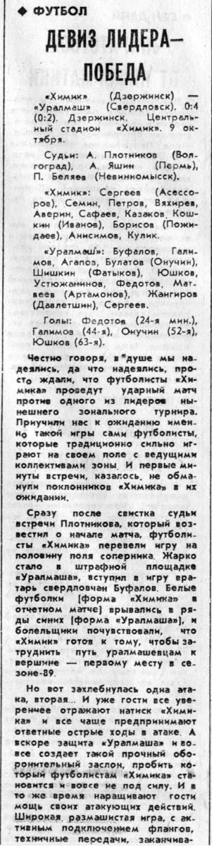 «Химик» Дзержинск - «Уралмаш» Свердловск - 0:4