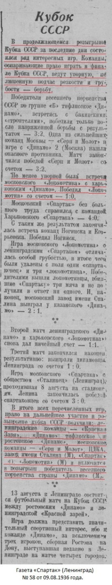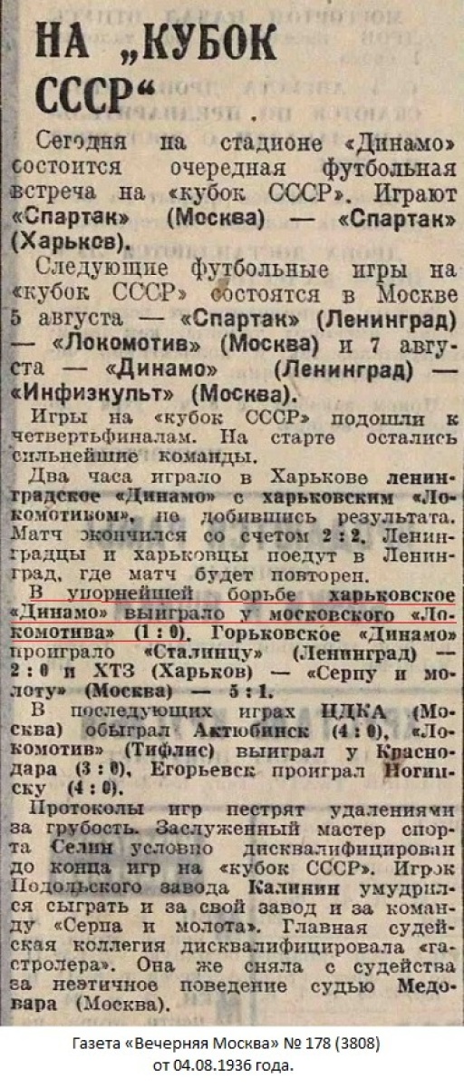Футбольные игры на кубок СССР намного подняли интерес харьковчан к футболу. Особенно этот интерес поднимался, когда сообщалось, что с харьковскими футболистами будет играть та или иная показательная команда.