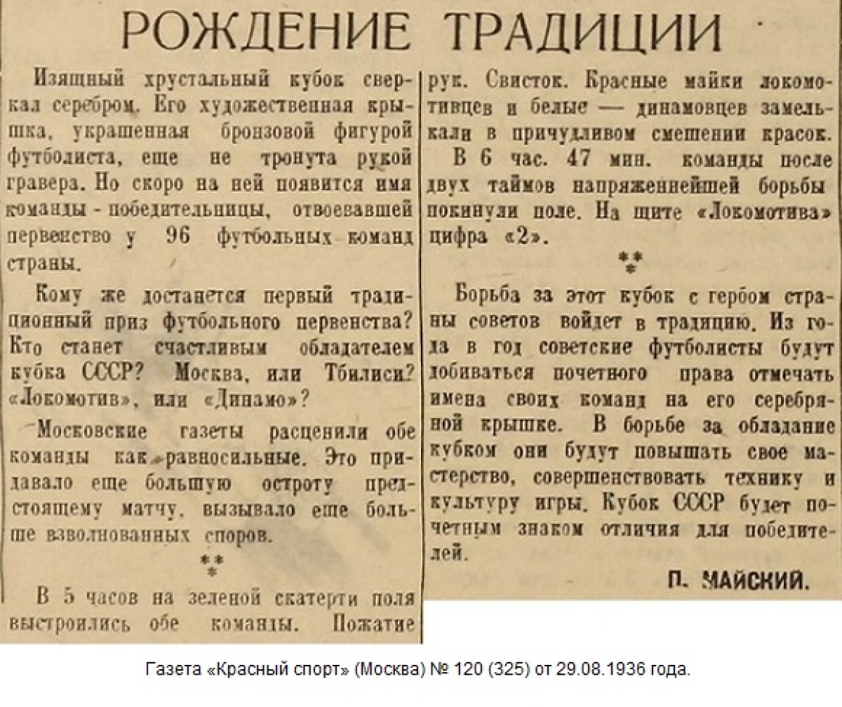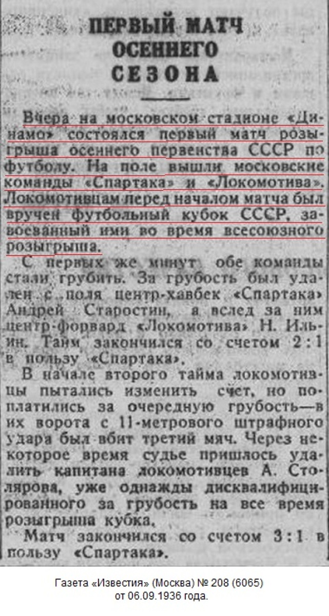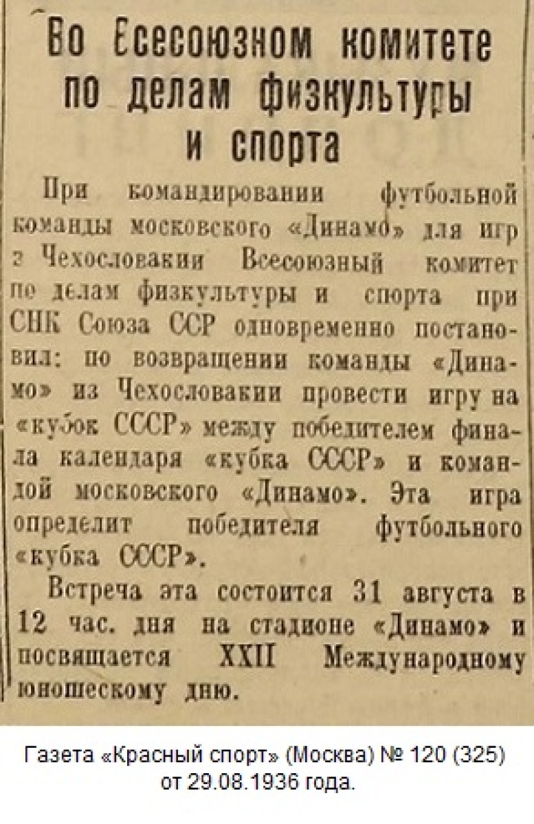 Комментарий. Финальный матч Кубка СССР 1936 года решили провести в Москве. Согласно жеребьевке хозяином поля в этом матче была команда «Локомотив» (Москва).