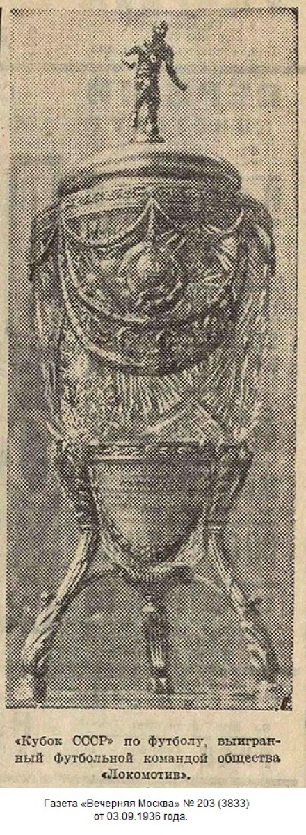 Вторые 45 минут игры не изменили результата, и на серебряной крышке хрустального кубка появилась первая надпись: ««Локомотив». Москва. 1936».