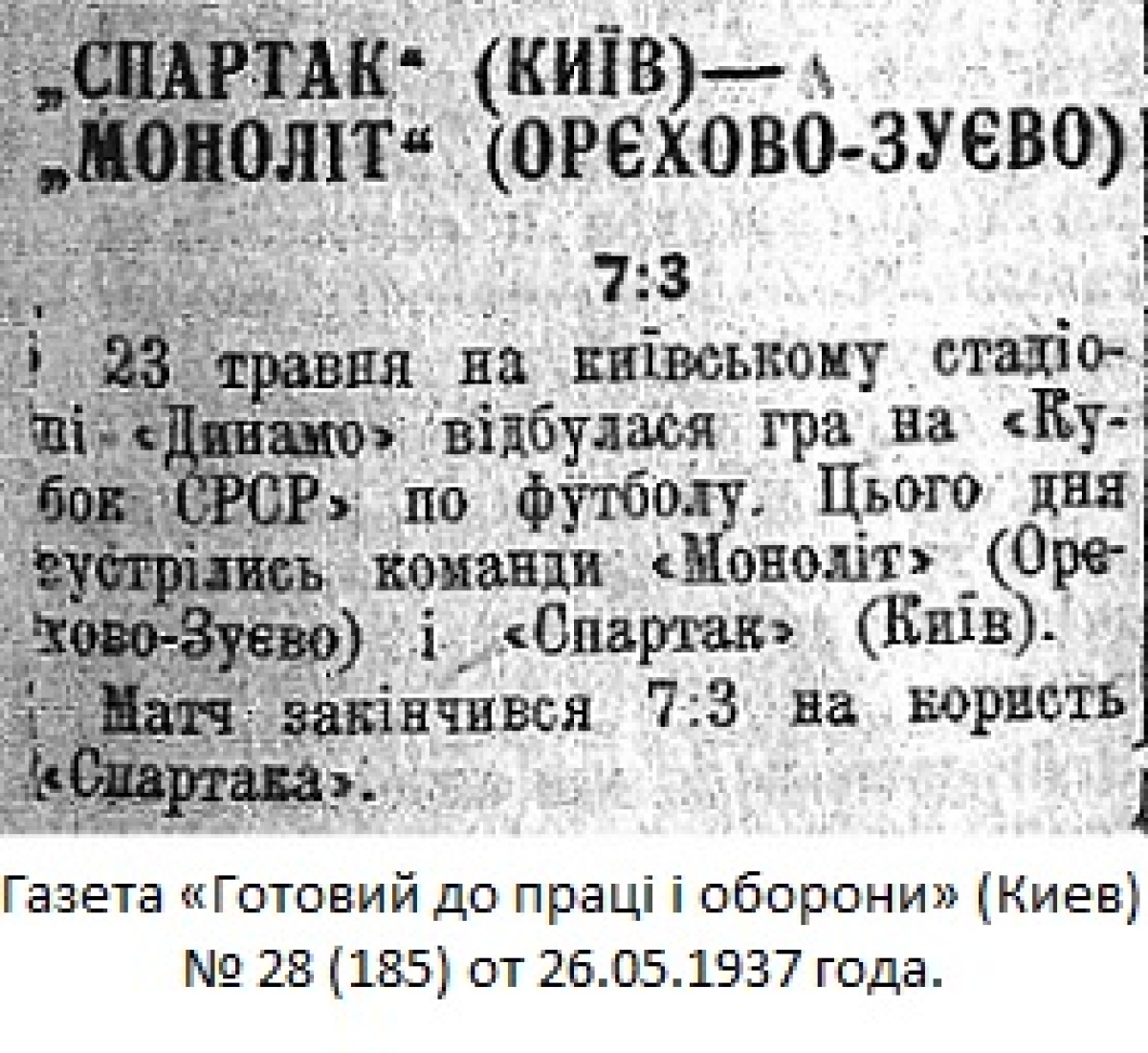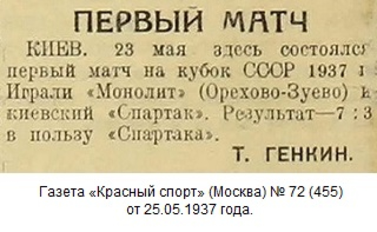 23 мая на киевском стадионе «Динамо» состоялась игра на «Кубок СССР» по футболу. Этим днем встретились команды «Монолит» (Орехово-Зуево) и «Спартак» (Киев).