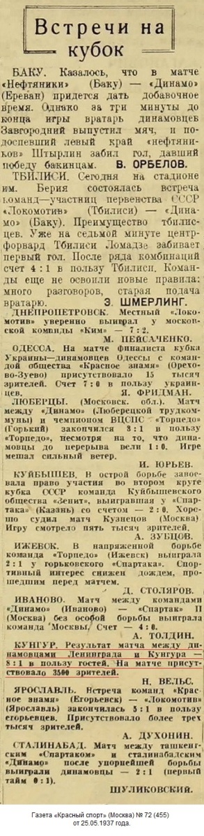 24 мая состоялся футбольный матч на кубок СССР. Встретились команды футболистов «Динамо» Кунгурской трудкоммуны и «Динамо» Ленинграда.