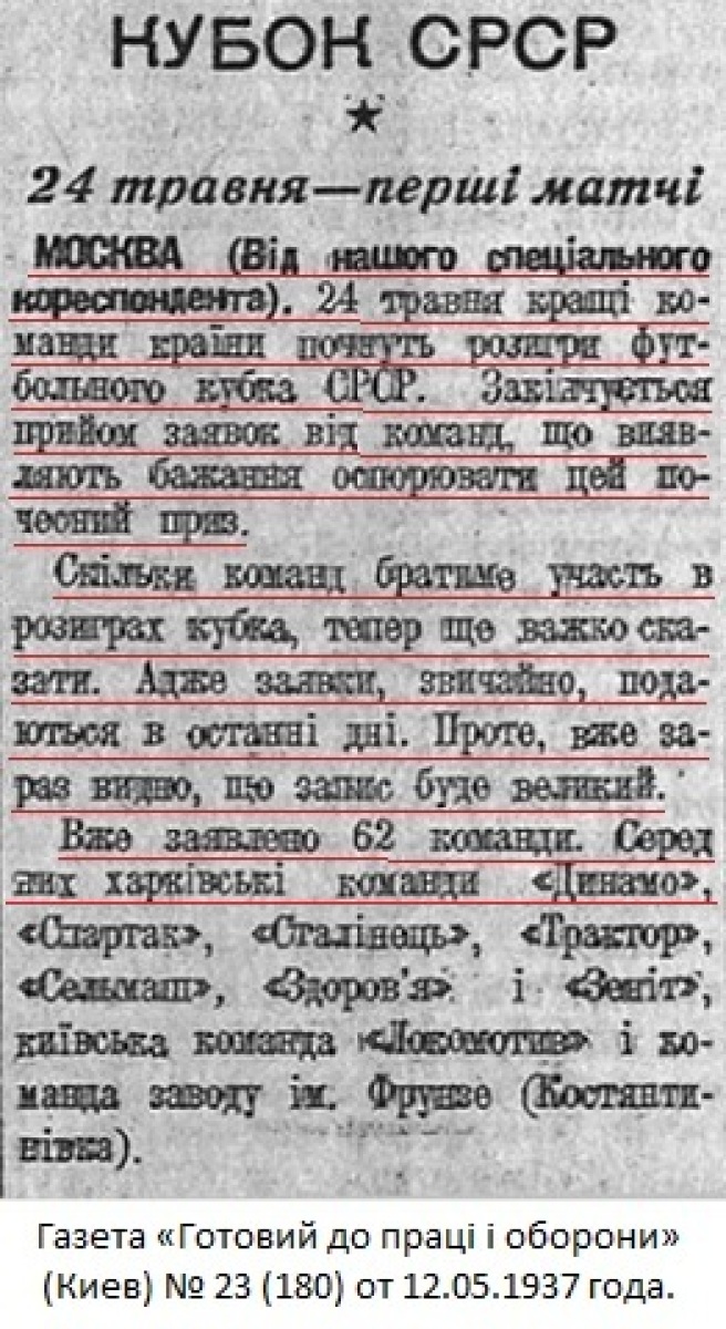 МОСКВА (Телеграфом от наш. кор.). 24 мая 124 футбольные команды Союза ССР в 51 городе выйдут соревноваться за футбольный «Кубок СССР»...