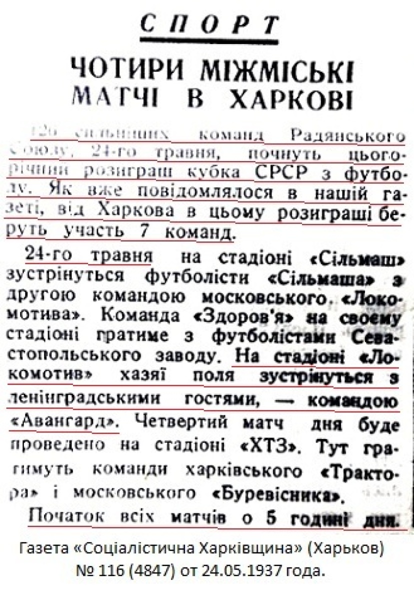 Газета «Соцiалiстична Харкiвщина» (Харьков) № 116 (4847) от 24.05.1937 года (перевод).
