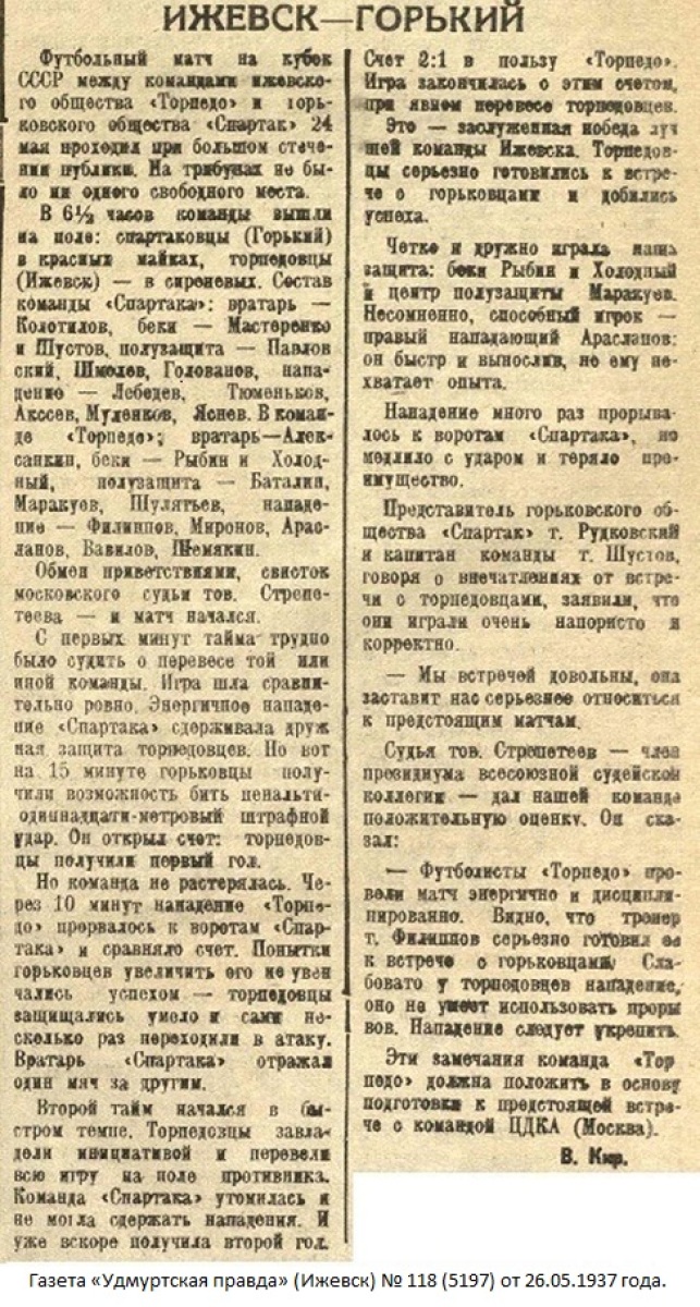 «Торпедо» Ижевск - «Спартак» Горький - 2:1