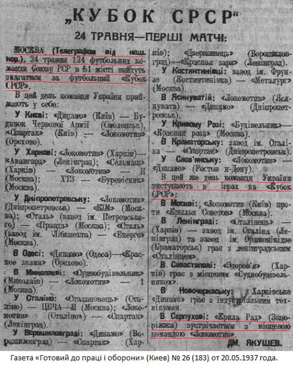 Газета «Готовий до праці і оборони» (Киев) № 26 (183) от 20.05.1937 года (перевод).