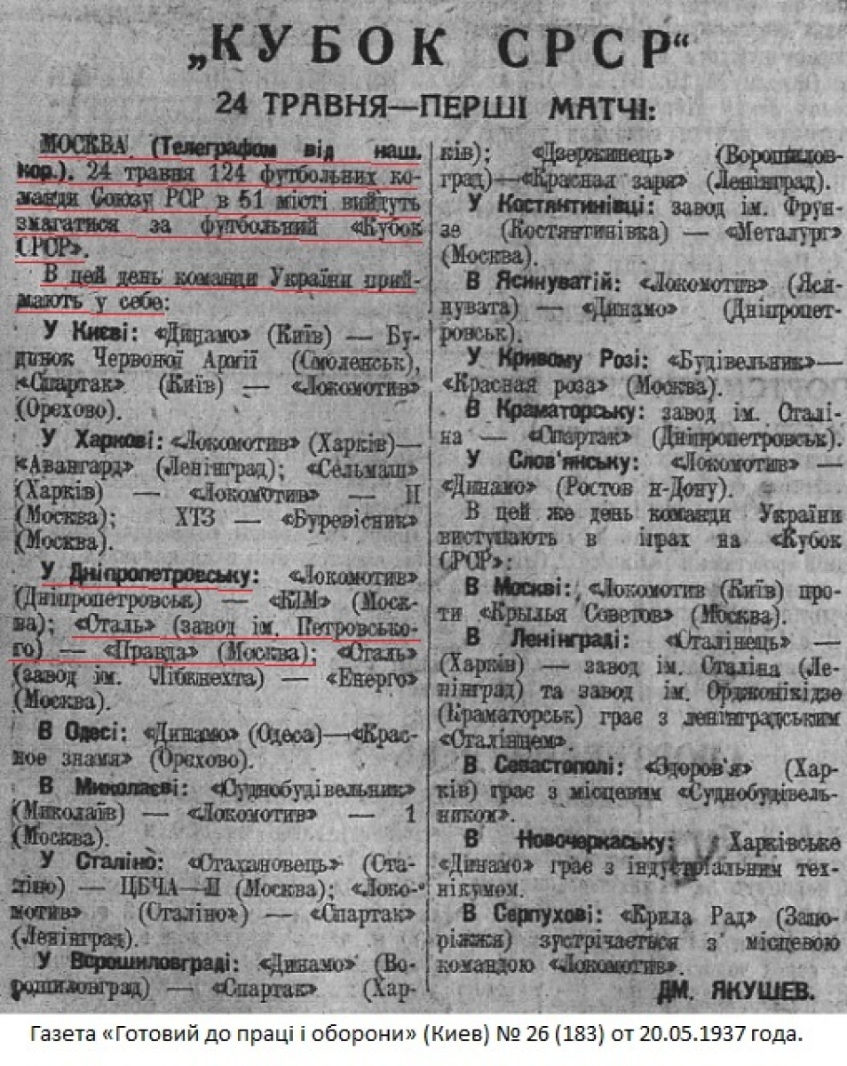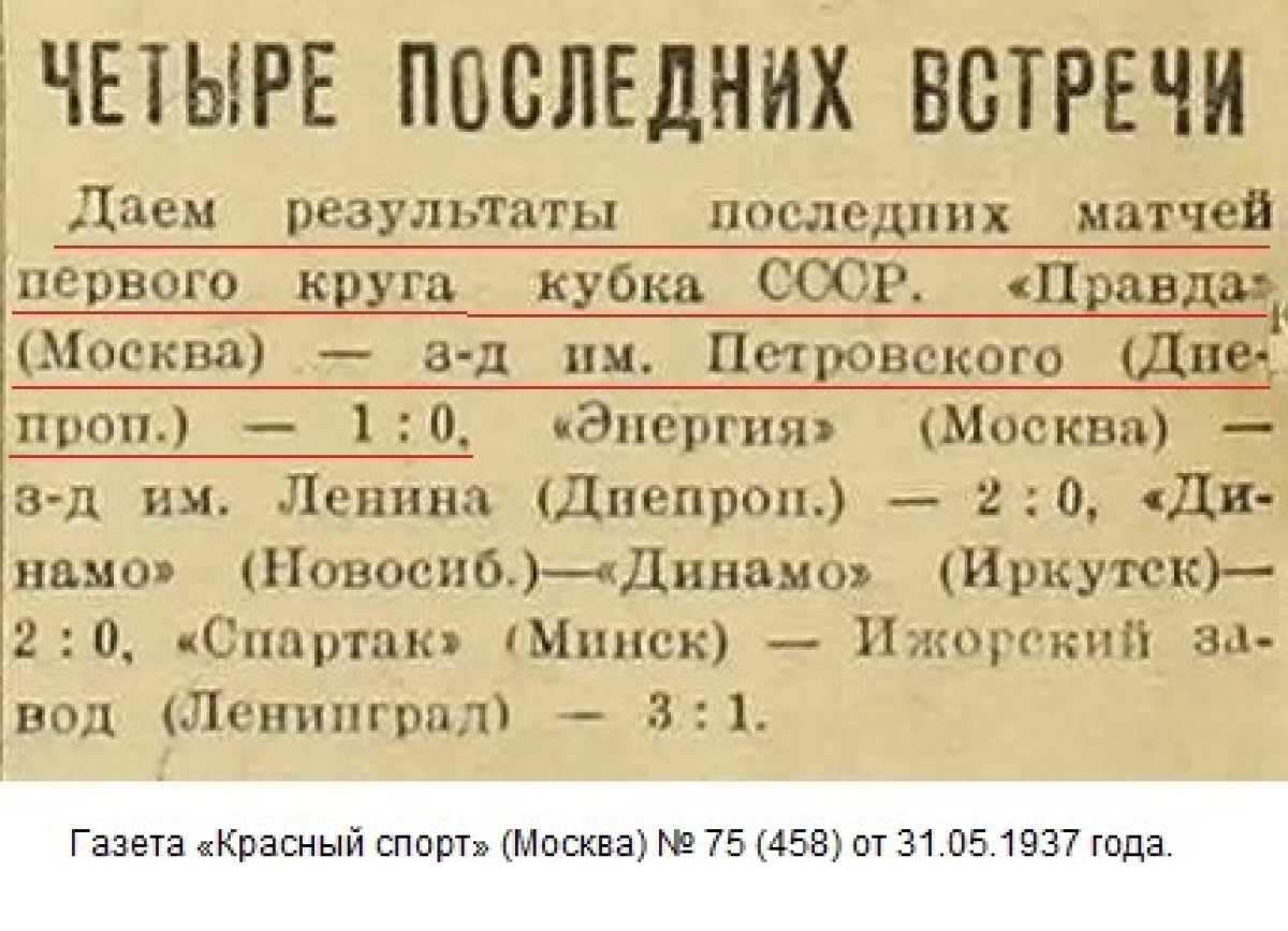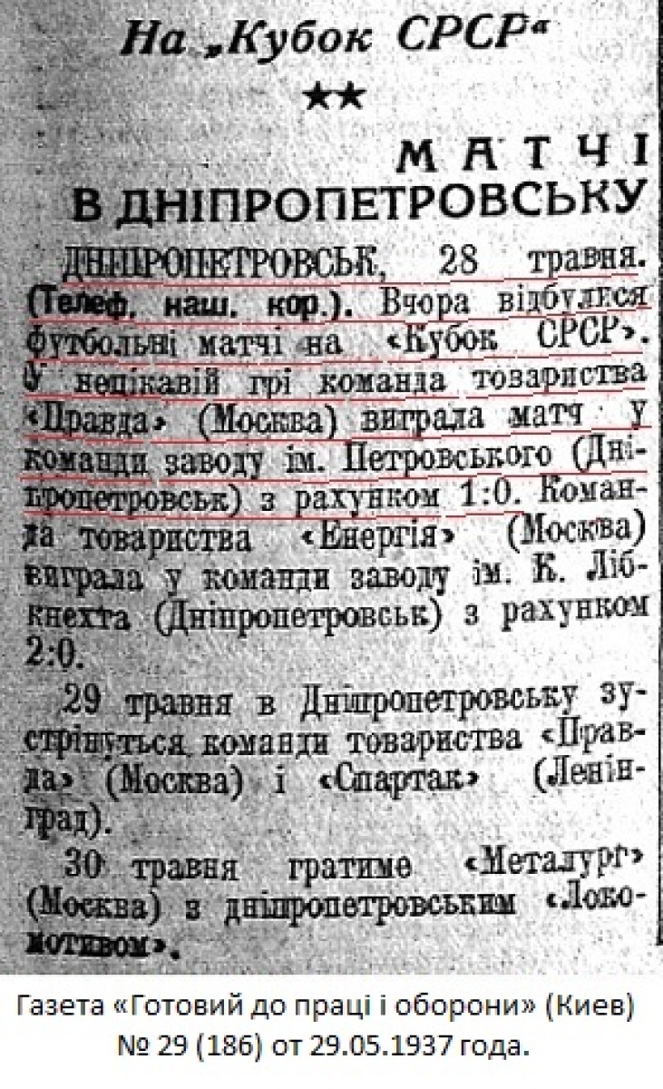 ...В Днепропетровске: ...«Сталь» (завод им. Петровского) – «Правда» (Москва)...