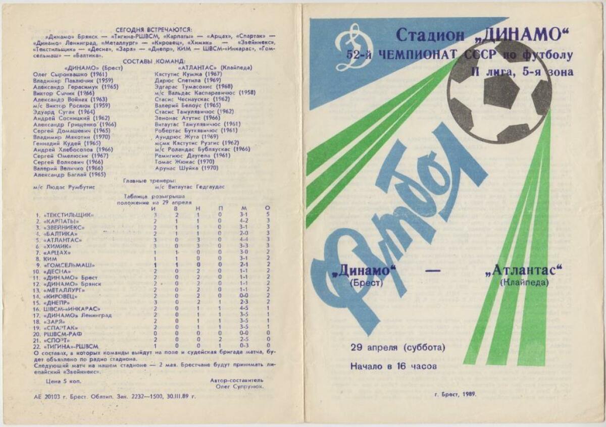 Чемпионат СССР 1989. Вторая лига (D3)
