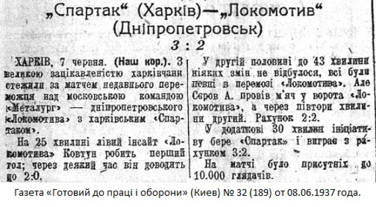 Газета «Готовий до праці і оборони» (Киев) № 32 (189) от 08.06.1937 года (перевод).