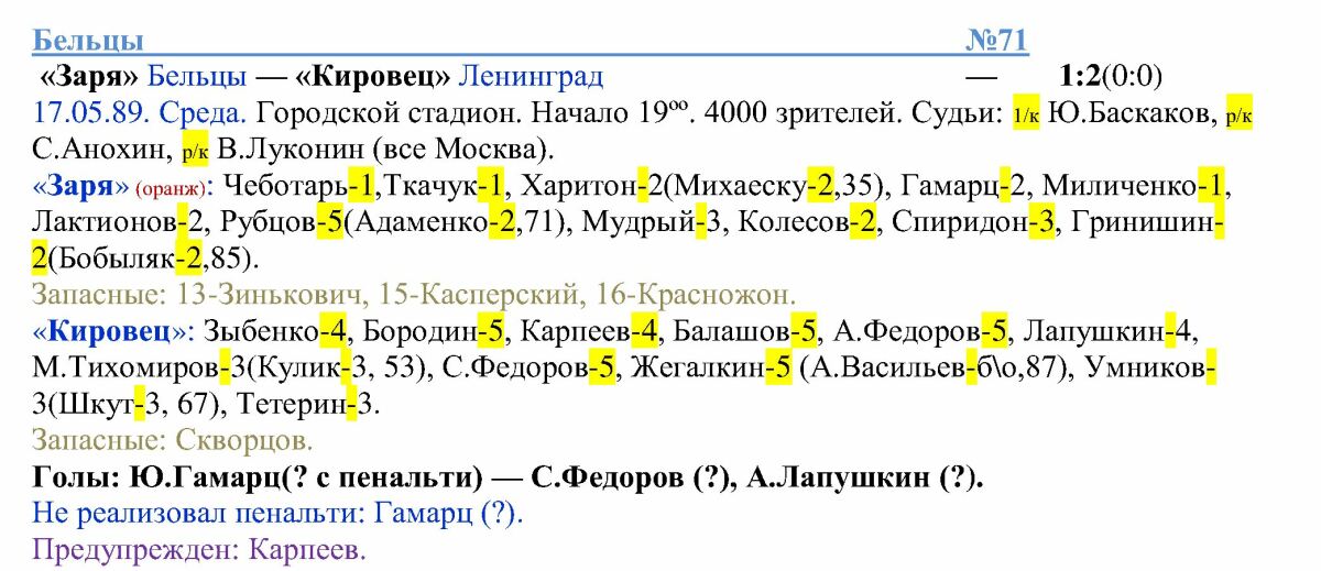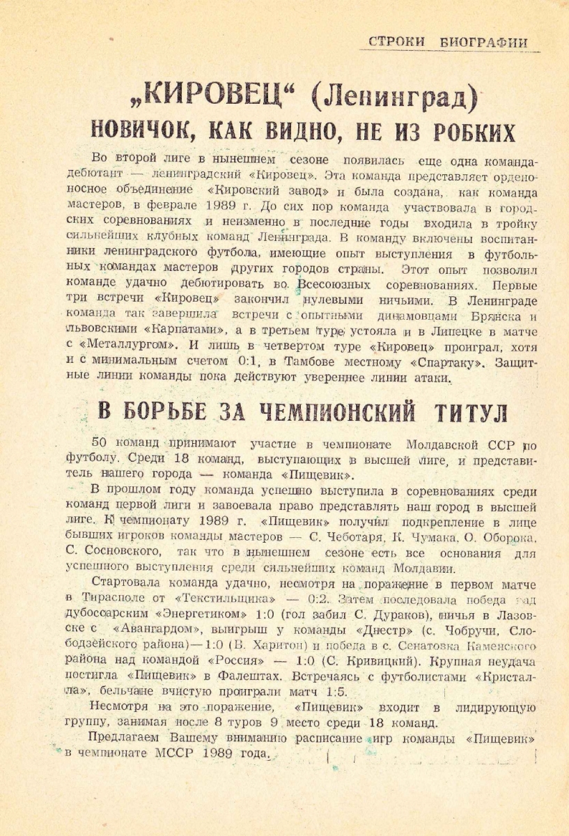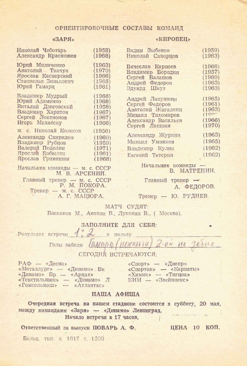 «Заря» Бельцы - «Кировец» Ленинград - 1:2