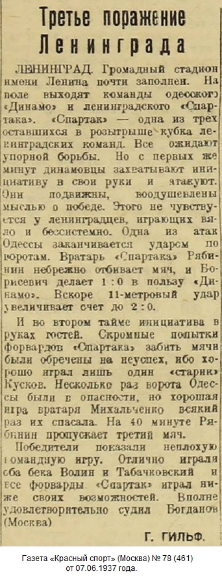 «Спартак» Ленинград - «Динамо» Одесса - 0:3
